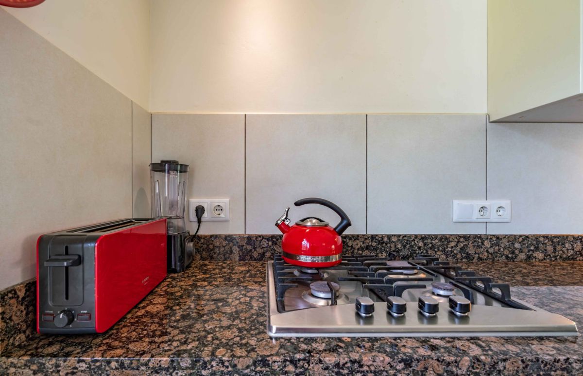 De open keuken is voorzien van een afwasmachine, koelvriescombinatie, oven en een gaskookplaat.