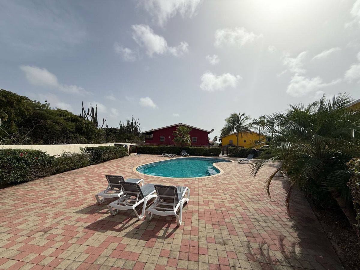 These two apartments for sale are located on a corner in a very centrally located resort with a communal swimming pool, on the road to Montana and Fuik, close to the Vista Montana project. Jan Thiel beach and Spanish Water are nearby.