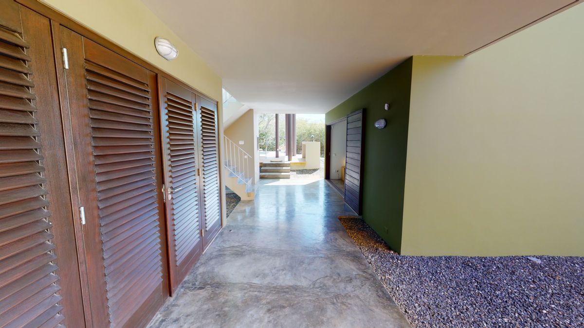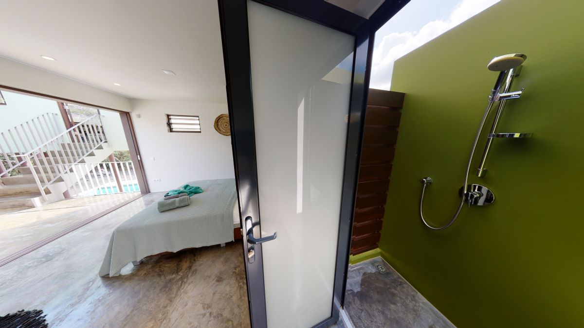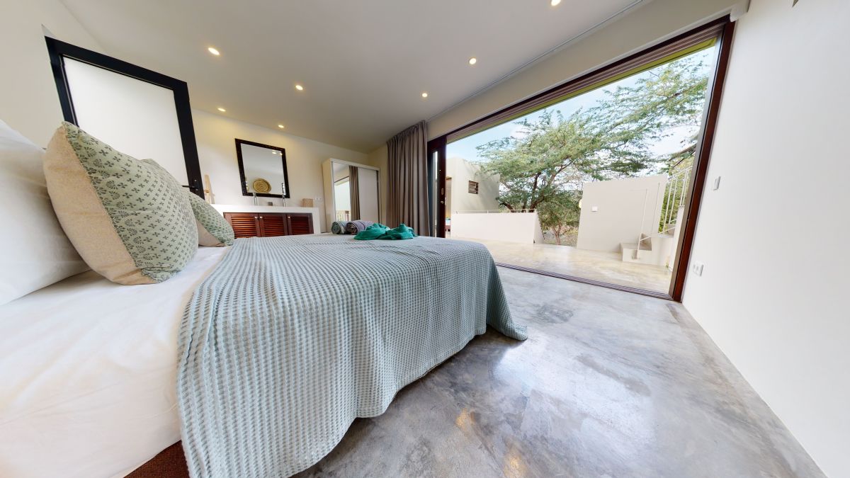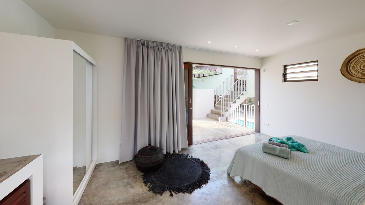 Op deze verdieping bevinden zich drie slaapkamers, elk ingericht met een comfortabel queensize bed, airconditioning en kastruimte. Iedere slaapkamer vormt een zelfstandige unit met een eigen badkamer, toilet en een buitendouche, wat zorgt voor een authentieke Caribische beleving. De kantoorruimte en de multifunctionele ruimte (met keuken) liggen op de begane grond en beschikken eveneens over een airconditioning.