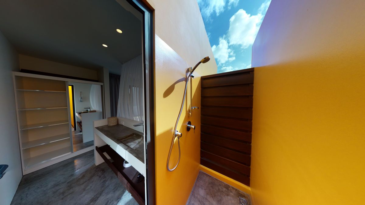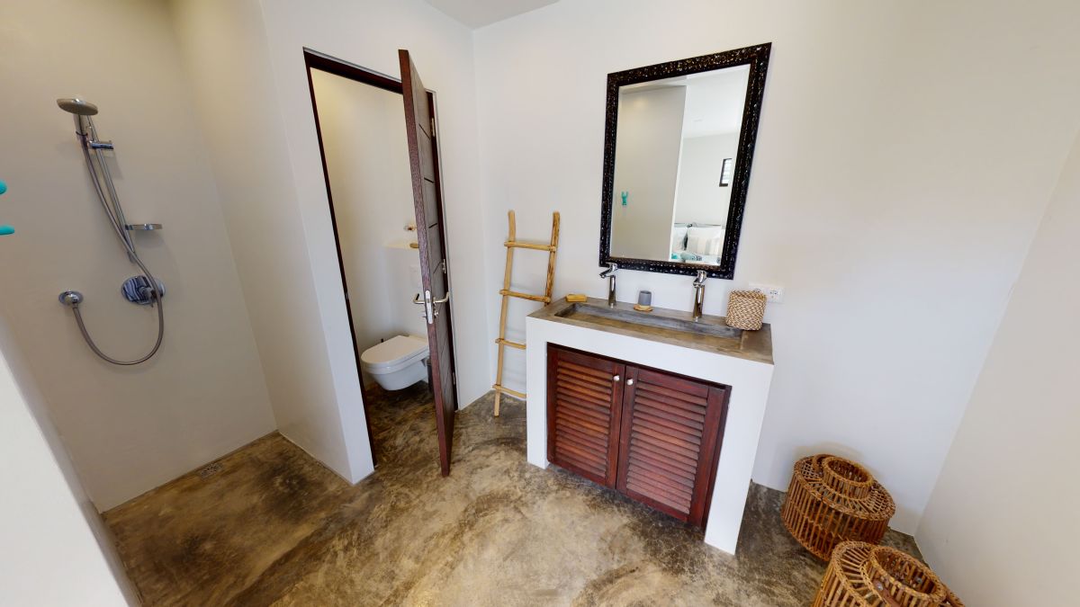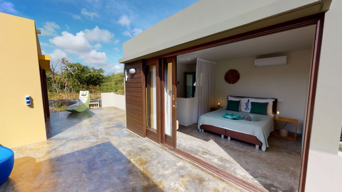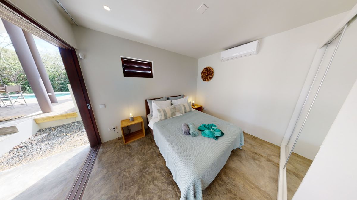 Op deze verdieping bevinden zich drie slaapkamers, elk ingericht met een comfortabel queensize bed, airconditioning en kastruimte. Iedere slaapkamer vormt een zelfstandige unit met een eigen badkamer, toilet en een buitendouche, wat zorgt voor een authentieke Caribische beleving. De kantoorruimte en de multifunctionele ruimte (met keuken) liggen op de begane grond en beschikken eveneens over een airconditioning.