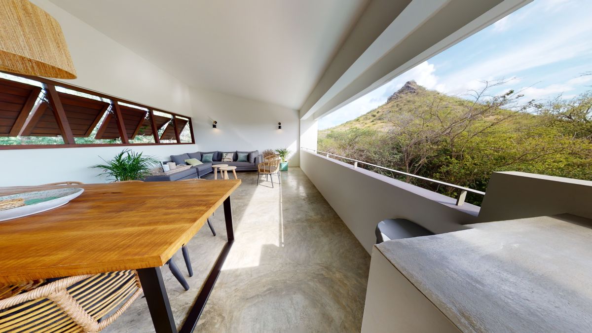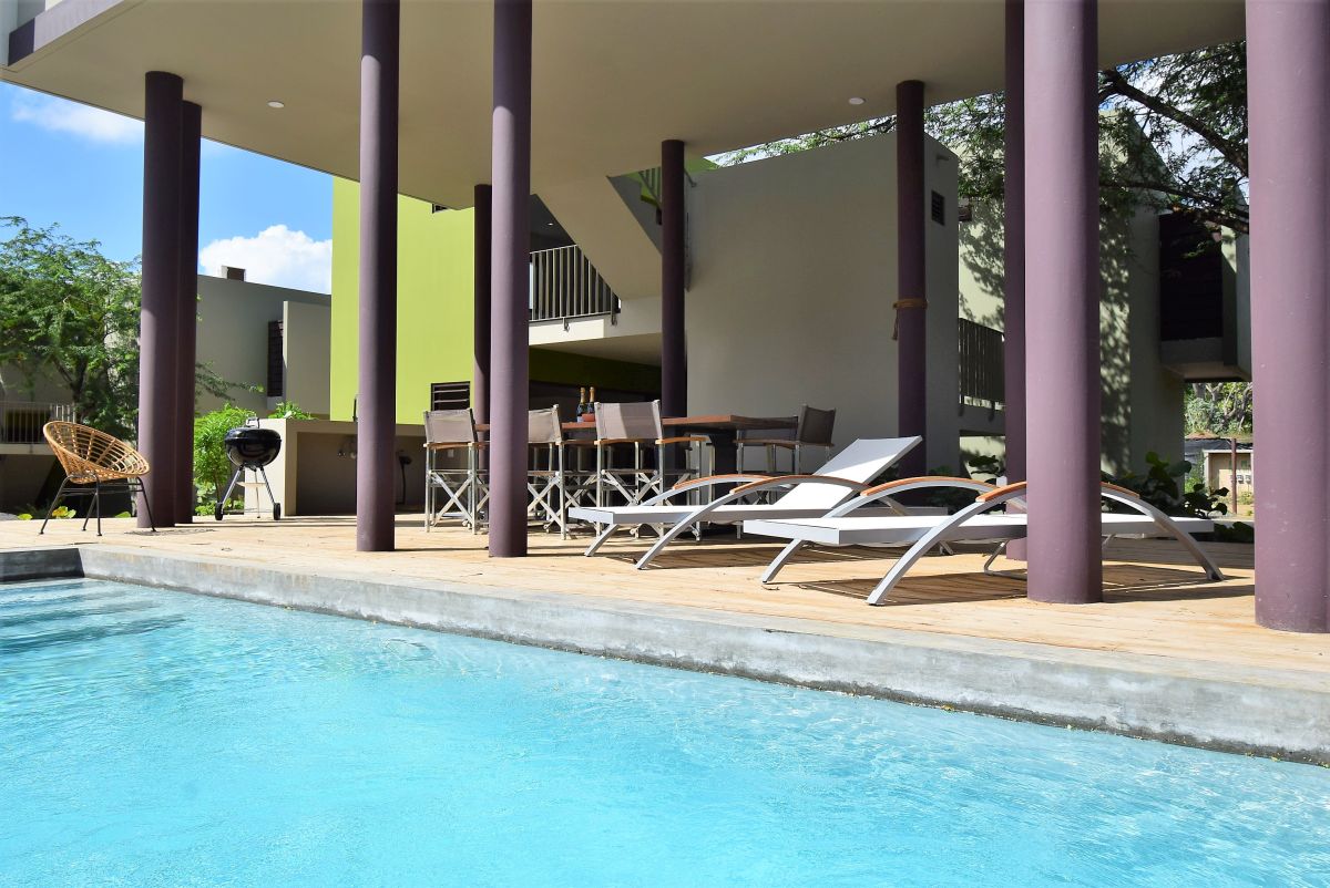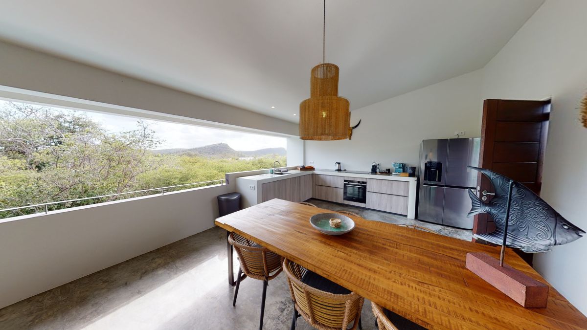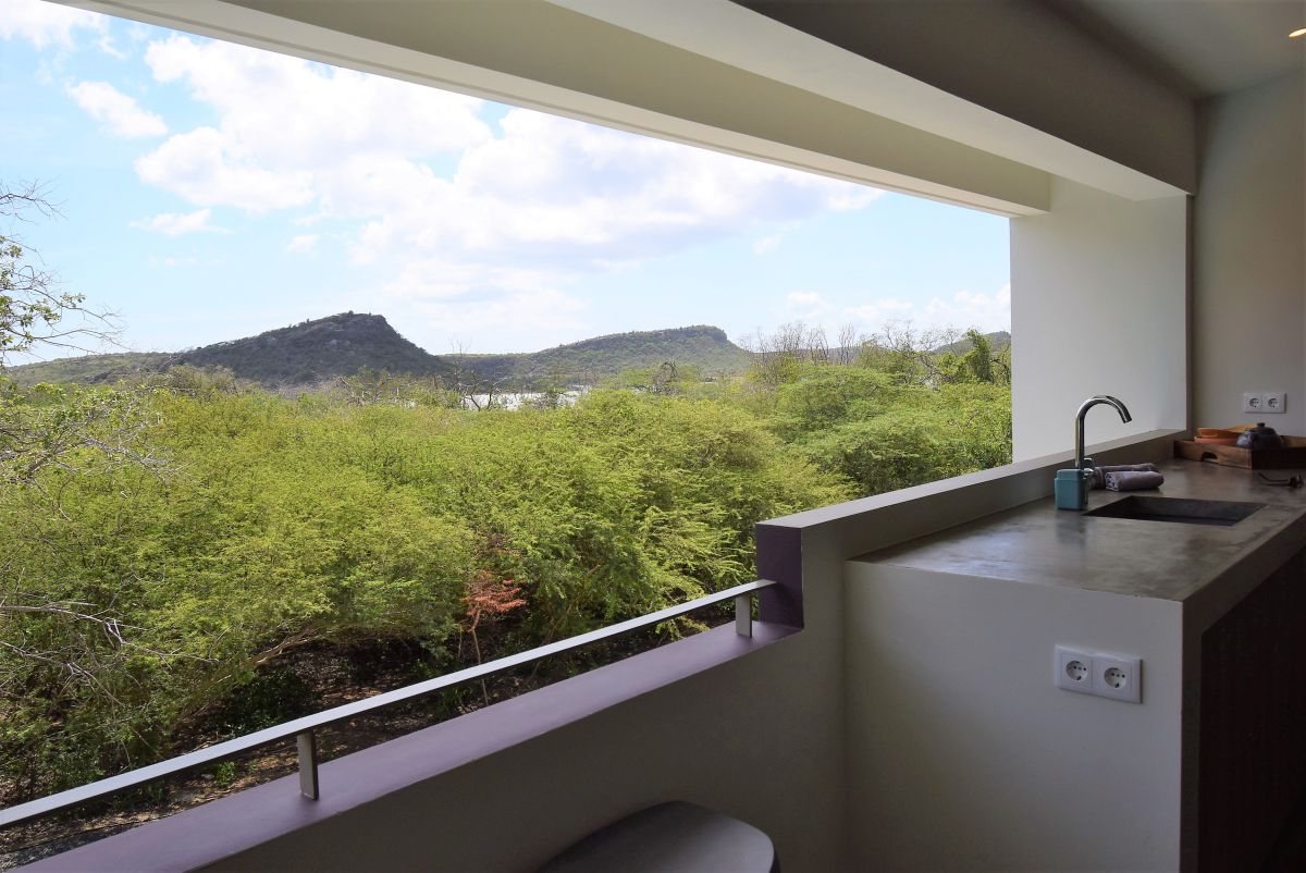 Deze huurvilla biedt een perfecte balans tussen luxe, comfort en natuur en is zeer geschikt wonen op Curaçao. U kunt hier verkoeling zoeken in het privézwembad, ontspannen op het ruime zonneterras of genieten van de schaduw in een hangmat. De royale buitenruimte is compleet ingericht met een zwembad, ligbedden, een eettafel en een volledig uitgeruste buitenkeuken met barbecue, waardoor het buitenleven centraal staat.