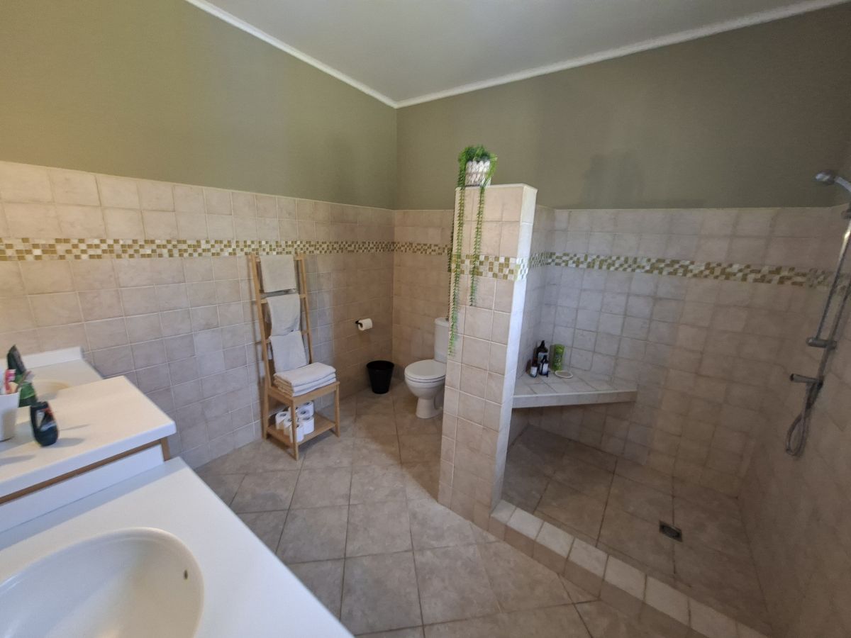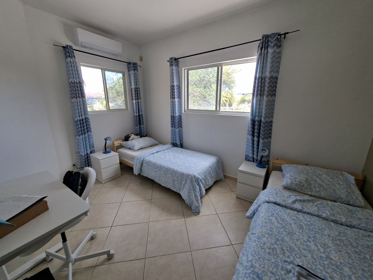 De woning wordt gemeubileerd aangeboden en beschikt over vier slaapkamers, allen voorzien van bedden en airconditioning. De master bedroom heeft een eigen badkamer met douche, dubbele wastafel en toilet, evenals een kledingkast. De overige drie slaapkamers delen een tweede badkamer met douche, wastafel en toilet. Twee van deze kamers zijn tevens ingericht met een bureau.