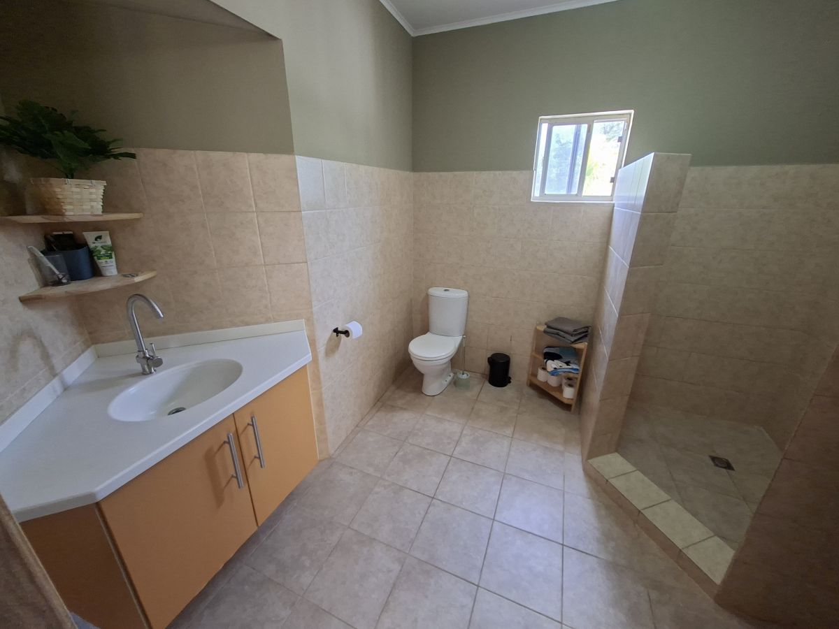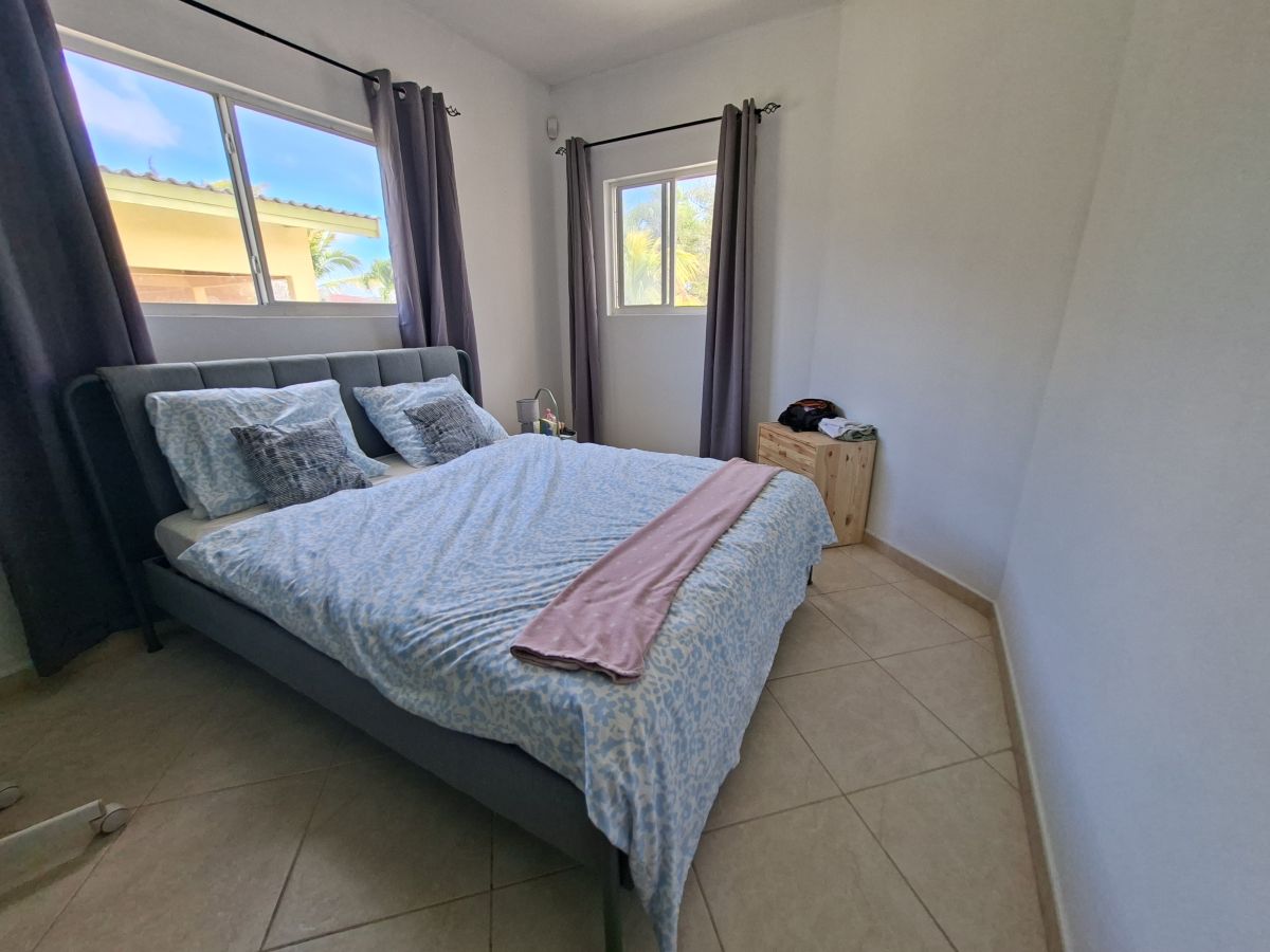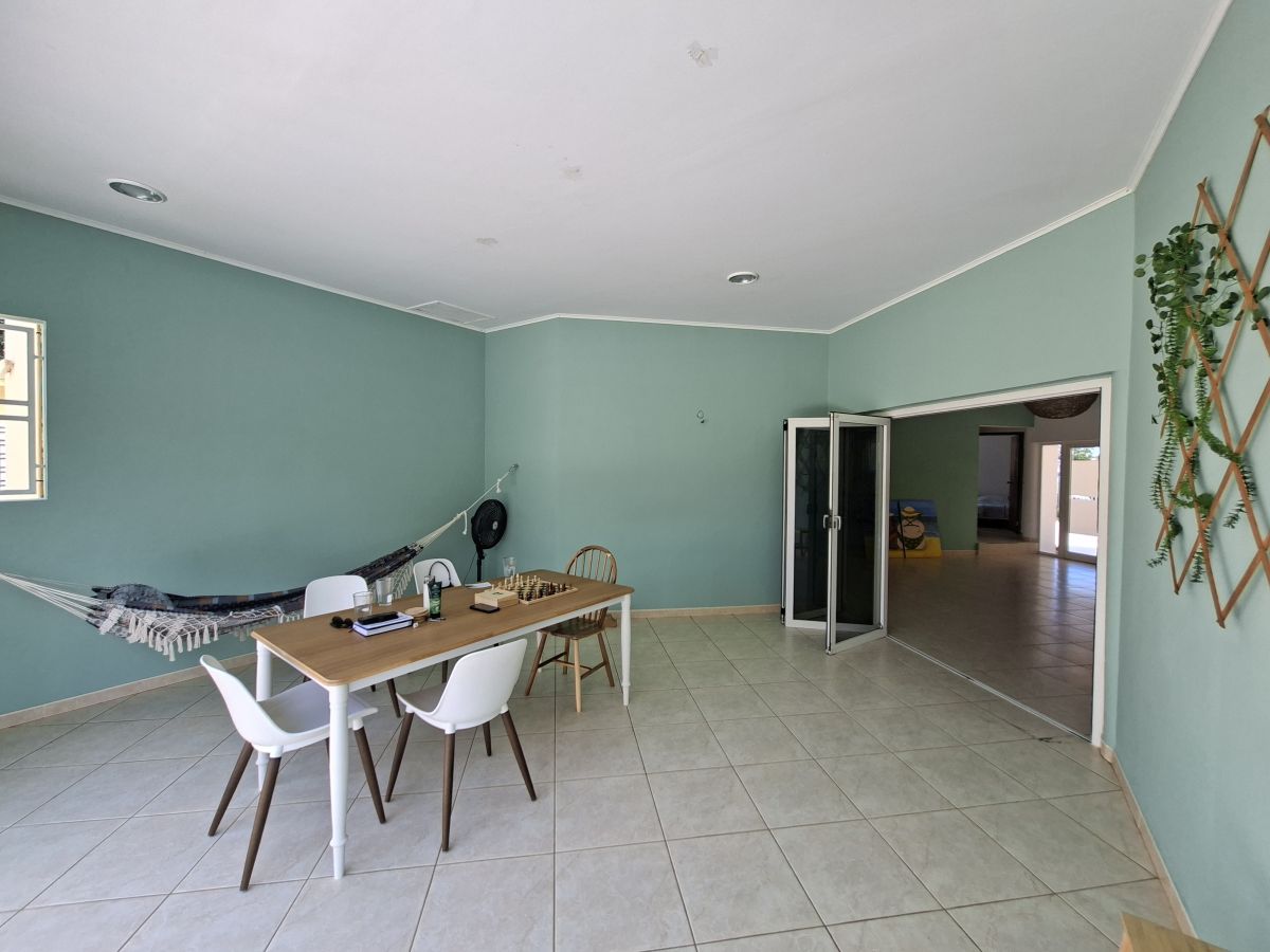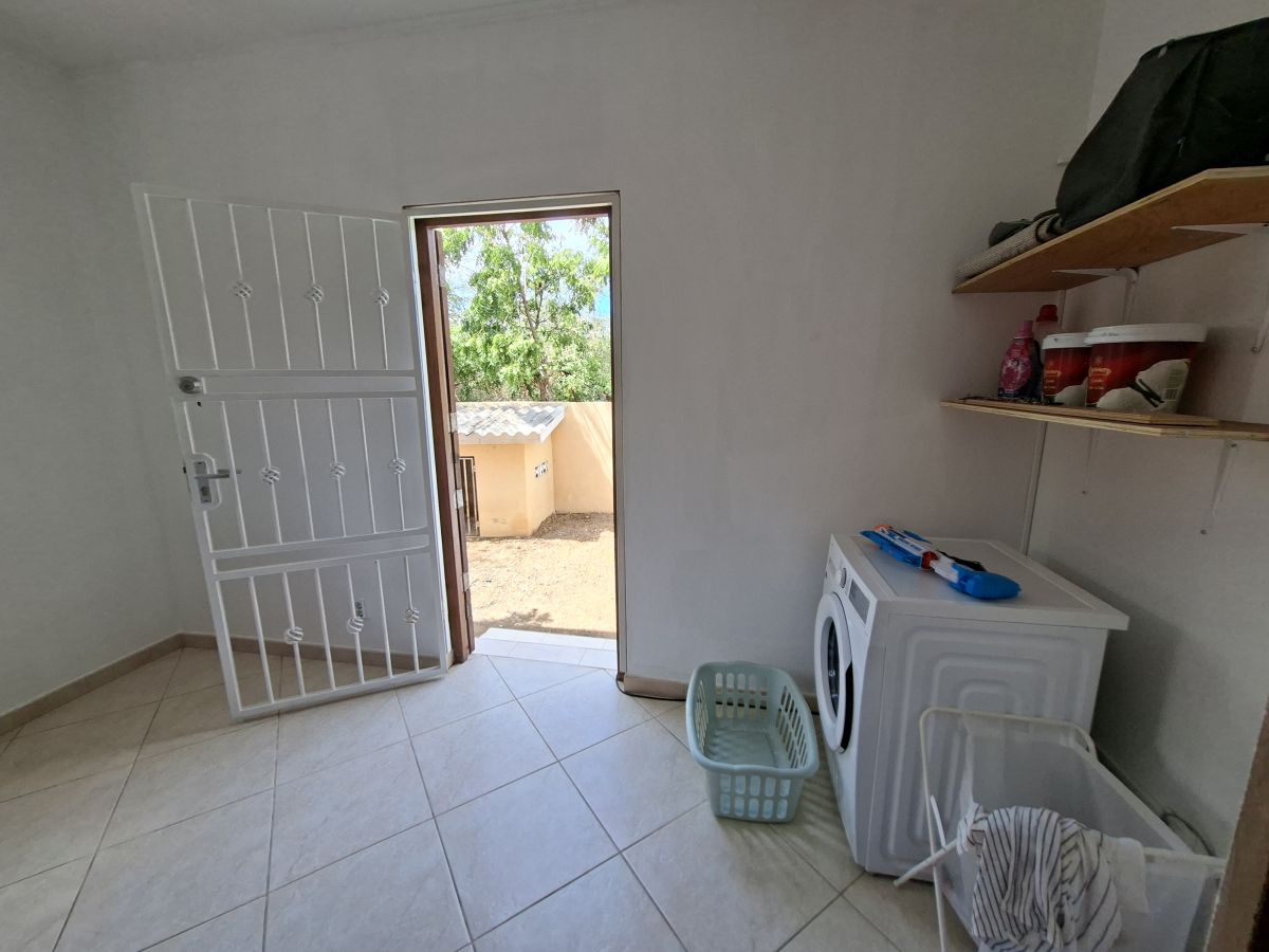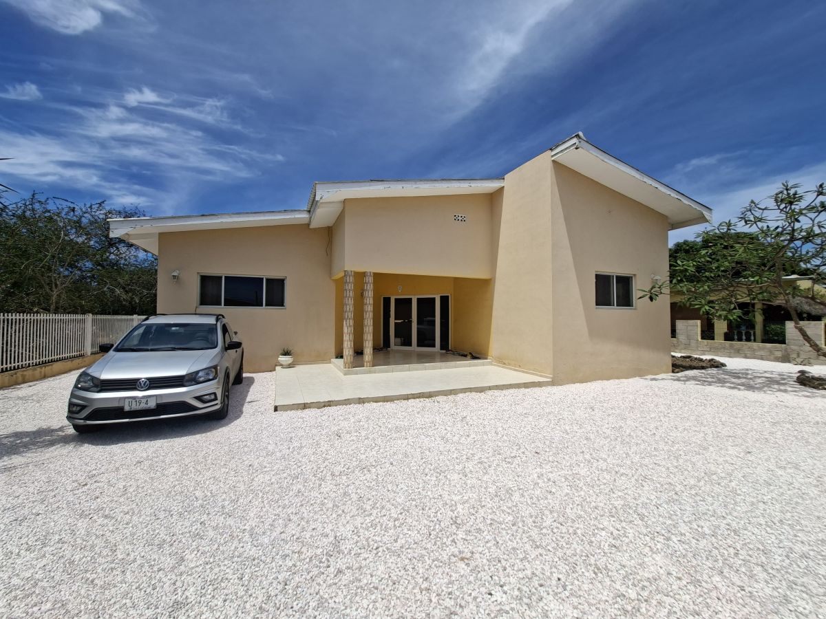 De woning bevindt zich op een volledig omheind terrein met een elektrische poort en biedt parkeergelegenheid voor twee auto’s op eigen terrein. Dankzij de gunstige ligging op de wind is het hier aangenaam wonen. De tuin is onderhoudsvriendelijk aangelegd met witte steentjes en tropische beplanting en beschikt over zowel een overdekte voorporch als een afgesloten overdekte porch aan de achterzijde. In de achtertuin staat een opzetzwembad, waarvan het onderhoud voor rekening van de huurder is. Daarnaast zijn er twee separate bergingen aanwezig voor extra opslagruimte.