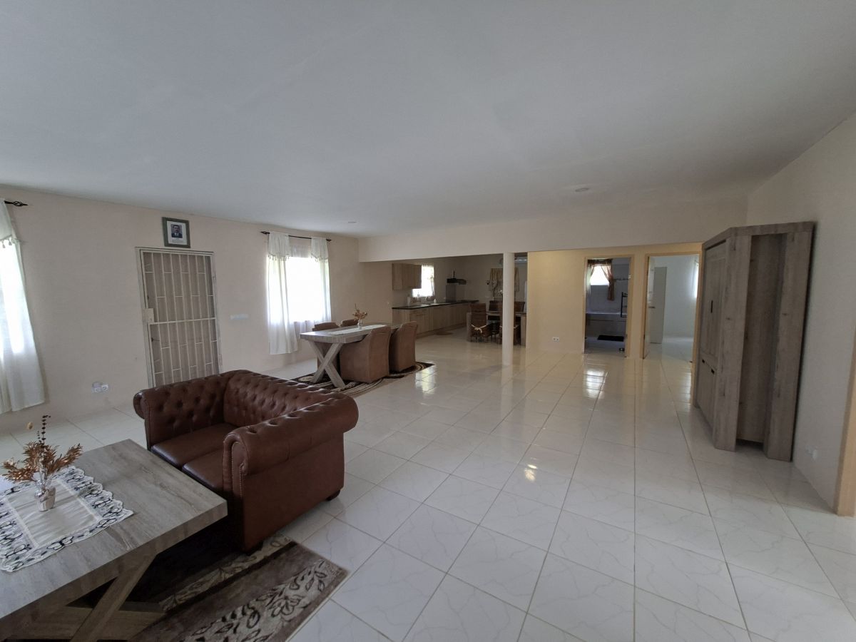Deze royale huurwoning met 3 slaapkamers staat in de centraal gelegen wijk Brievengat Bieu, in de buurt van het stadion. De woning staat op een ruim en ommuurd perceel. De woning heeft een overdekte voor- en achterporch. De auto kan buiten het terrein geparkeerd worden. Het totale woonoppervlakte is 225 m2, waarvan de slaapkamers gemiddeld 23 m2. De woning is recent geschilderd.
